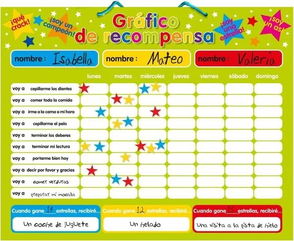 Las tablas de recompensa son un recurso muy utilizado en los hogares para instaurar nuevas conductas, a través de premiar conductas adecuadas mediante el refuerzo positivo. Fomentamos la autoestima, la autoconfianza y la independencia.